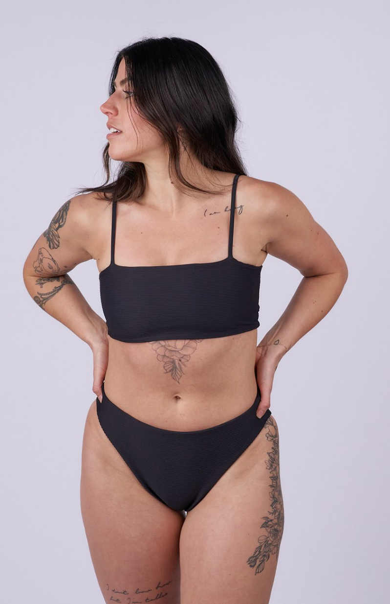 Ethically and sustainably made in Oregon using 78% ECONYL® regenerated nylon, 22% elastane, and re-enforced with rubber elastic to ensure the suit maintains its shape and supports you throughout all of your adventures.