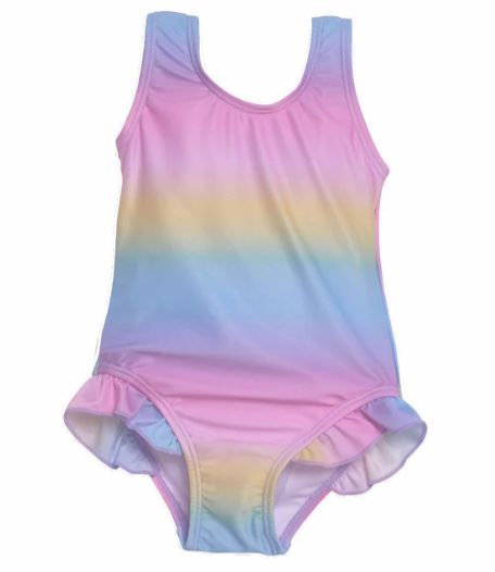 Flap Happy UPF 50 Delaney Hip Ruffle Swimsuit - Rainbow Ombre